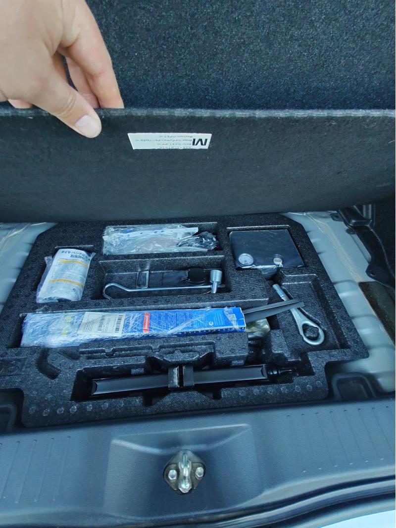 - Аварийный комплект: домкрат, балонный ключ, эл. насос, герметик, знак аварийной остановки, буксировочная петля.